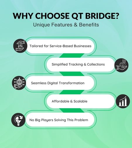 Simplify your business operations with a single, powerful platform. From automated payments to workforce tracking, QT Bridge helps service providers manage transactions efficiently and securely—all in one place.